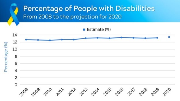 Experts estimate there are more than 44 million people with disabilities in the U.S., representing 13.4% of the population.1